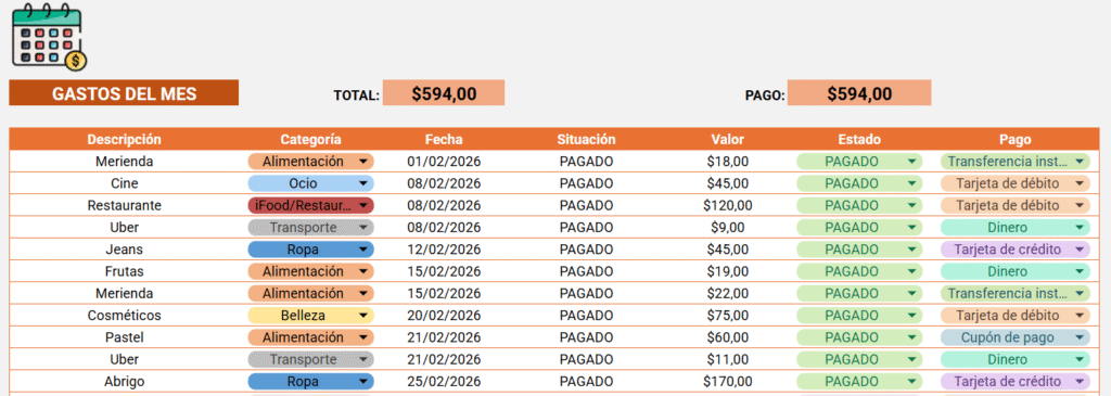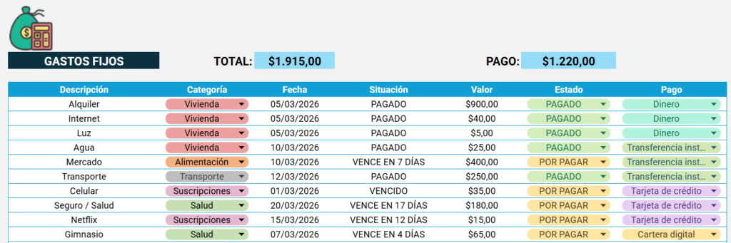 ✅ Rastrear cada gasto fijo y variable, visualizando claramente a dónde va tu dinero;